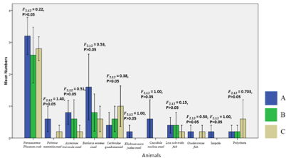 Figure 3 Show Mean (±SE) number of different species of benthos in 3 areas.