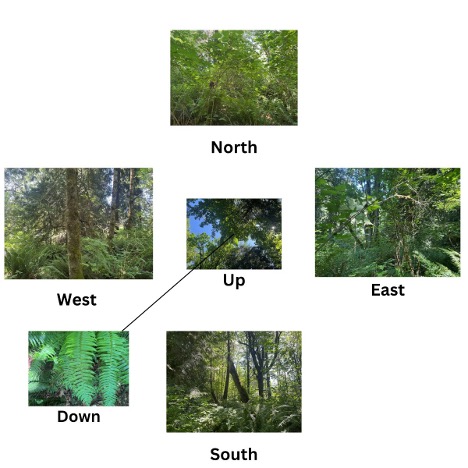 Examples of directional photos taken via GLOBE Observer. (Our group focused on the "down" photos, although we later realized adding in other directions would most likely have improved our model's accuracy.)