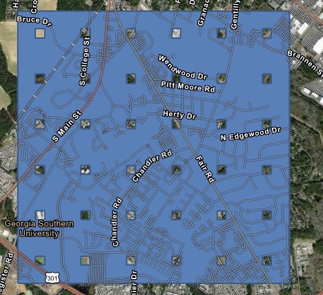 We used Collect Earth Online to classify our land cover images and label 100 points within each 100 meter box. We labeled the point as impervious surface, tree, grass, unvegetated land, etc. This further analyzed our AOI and showed the distribution of impervious/pervious surfaces in each of the 100 meter boxes.