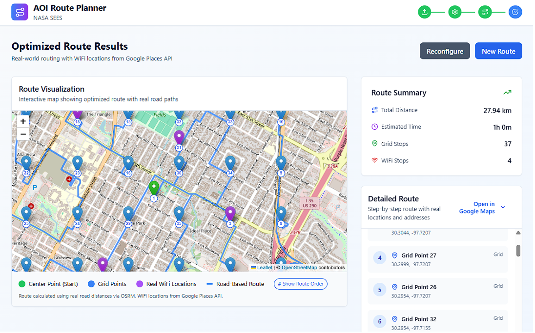 You've got a list of AOI coordinates. Google Maps will show them to you, but it won't tell you the best order to visit them. If you’ve got more than a few points, this becomes a mess—guesswork, wasted time, and unnecessary backtracking.