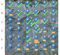 Next, I took a screenshot of my AOI grid in satellite view, and put it on a Google Slide. I labeled the rows and columns in “Battleship” style, with the rows as letters A-F, and the columns as numbers 1-6 (see Figure 1). This really helped me to identify which point I was going towards when I was walking between my points, as well as checking off the points and keeping track of the locations I needed to visit. For me, it was easier to look at the grid and say, “I’m at point E3,” compared to numbering the points as 1-37 and saying, “I’m at point 27” (what row is that? Where is that in my grid? I have no idea!).